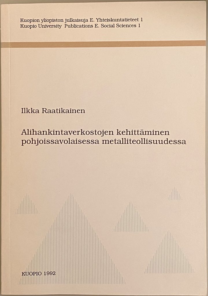 Raatikainen, Ilkka (1992). Kuopio: Kuopion yliopiston julkaisuja E. Yhteiskuntatieteet 1. Akateeminen väitöskirja. 200 s. Oulun yliopiston teknillinen tiedekunta, taloustieteen osasto. Väitöskirja saatavissa postituskuluja vastaan.