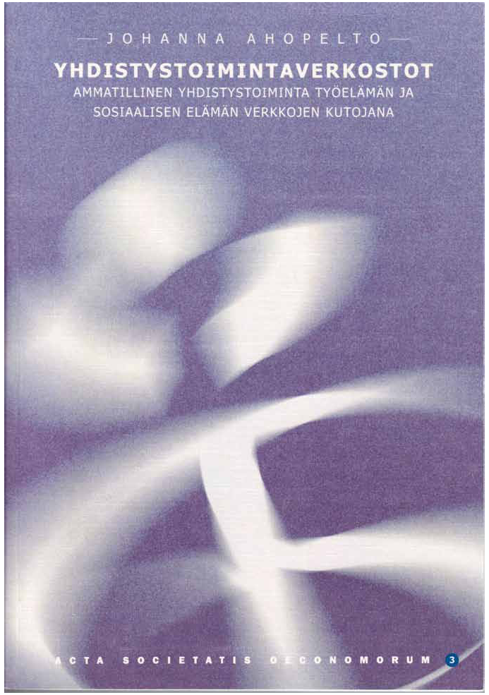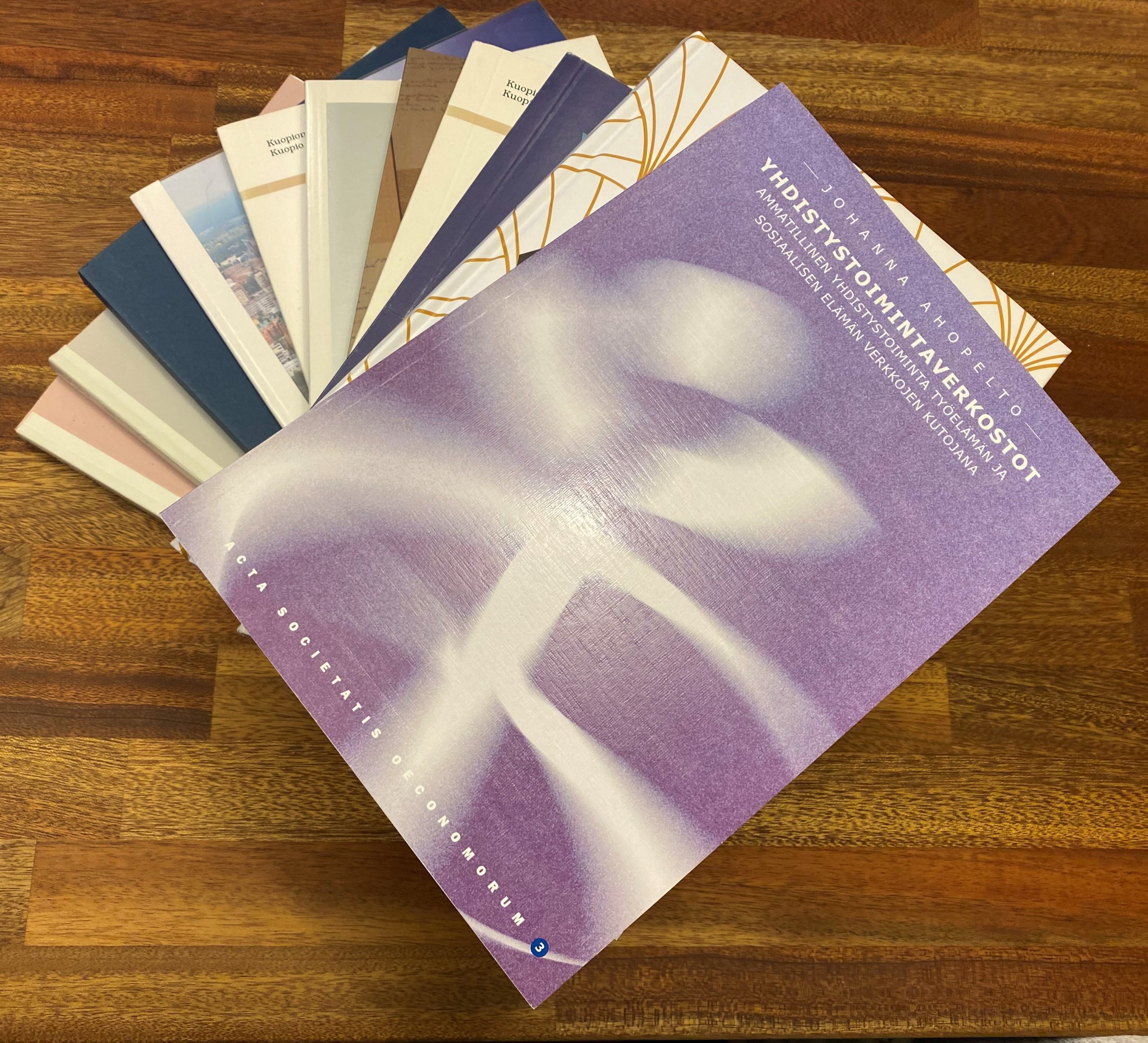 Ahopelto, Johanna (2009). Acta Societatis Oeconomorum 3. Kuopion yliopisto, yhteiskuntatieteellinen tiedekunta, sosiaalipolitiikan ja sosiaalipsykologian laitos. Akateeminen väitöskirja. Helsinki ja Vaasa: Suomen Ekonomit SEFE; Ykkös-Offset. 317 s. Väitöskirja saatavissa postituskuluja vastaan tai ladattavissa täältä.