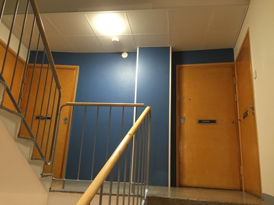 Asunto on valoisa ja selkeäpohjainen. Lattiamateriaalit ovat laminaatti asuinhuoneissa, keittiössä ja eteisessä sekä kylpyhuoneessa klinkkeri. Seinät ovat valkoisiksi maalatut, kylpyhuoneessa on valkoinen maali ja osittainen kaakelilaatoitus. Kylpyamme. Ikkunoissa on sälekaihtimet. Asunnossa on taloyhtiölaajakaista (50 Mb).